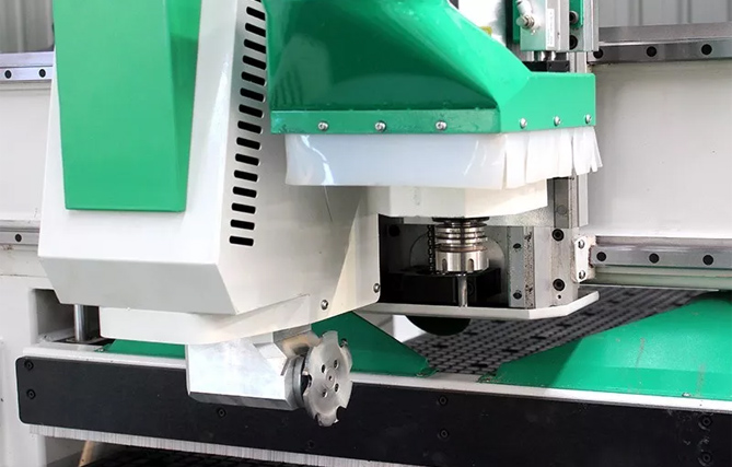 9.0KW大功率風(fēng)冷換刀主軸,適合柜體長(zhǎng)時(shí)間高速切割下料、以及各種造型的雕銑加工,進(jìn)口鋸銑電機(jī)適用于拉米諾隱形件開(kāi)槽加工。
